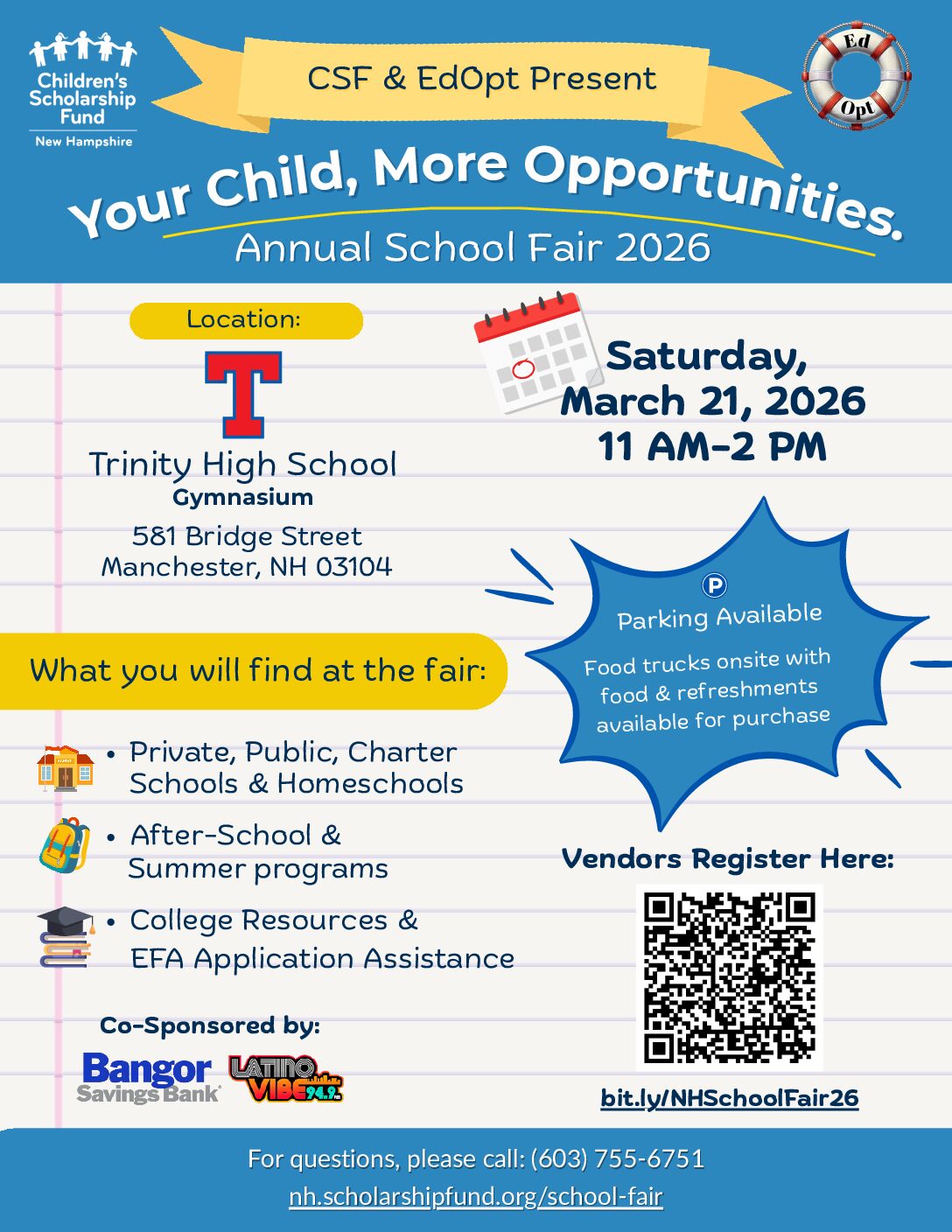 Children’s Scholarship Fund School Fair 2026 • Randy Armstrong, Presenter • Saturday March 21, 2026 @11am-2pm • Trinity High School